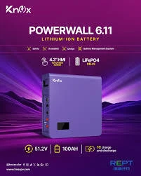KNOX Powerwall 6.11 Lithium Battery LFP LIO 5.32 IP20 51.2vdc 100AH 1C